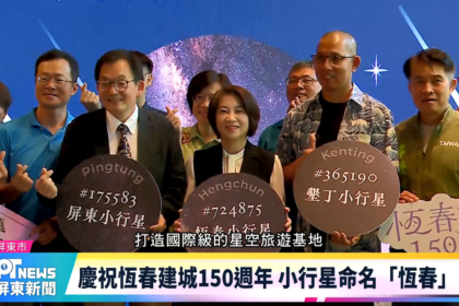 新聞慶祝恆春建城150週年 小行星命名「恆春」今年恆春建城150週年,國際天文學聯合會審查通過,第724875號小行星正式命名為「HENGCHUN(恆春)」...ju.yin2025-10-13 Read More