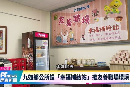 九如鄉公所近年積極打造友善職場環境新氛圍,並在所內設置「幸福補給站」架設飲品櫃,無論冰涼汽水、咖啡應有盡有,另...
