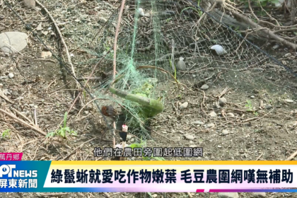 綠鬣蜥氾濫成災,正逢紅豆種植期,屏東縣政府除了委託專業移除綠鬣蜥廠商加強夜間巡邏移除綠鬣蜥,也補助紅豆農設置低...