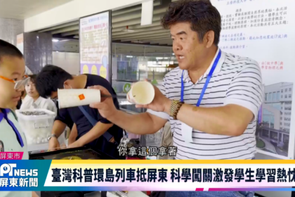 「2025年臺灣科普環島列車」,載著滿滿的科學驚奇與學習熱情,來到屏東車站,設有18個科學闖關體驗攤位,透過多...