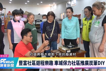 為了增添社區遊程的豐富度,車城保力社區推廣炭筆DIY活動,將樹枝等廢資材製成炭筆,再帶領遊客以星砂、玻璃瓶等材...