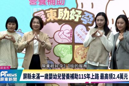 為強化家庭支持、減輕育兒負擔,屏東縣政府正式宣布,「未滿一歲嬰幼兒營養補助」政策,將從115年1月1日實施,凡...
